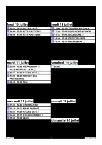 PLANNING DU 10 AU 14 JUILLET 2023