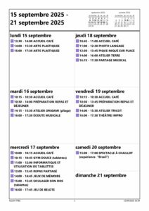PLANNING DU 15 AU 20 SEPTEMBRE 2025