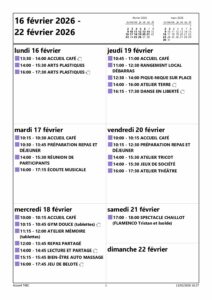 PLANNING DU 16 AU 21 FÉVRIER 2026