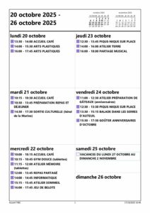 PLANNING DU 20 AU 25 OCTOBRE 2025