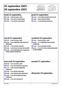 PLANNING DU 22 AU 28 SEPTEMBRE 2025
