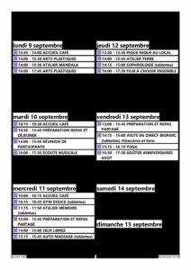PLANNING DU 9 AU 13 SEPTEMBRE 2024